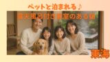 - アメニティ:犬用ベッド、トイレシート、食器、消臭スプレー、ドッグサークルなど/ワンちゃん用ウェルカムおやつ付きのサービスがあります。